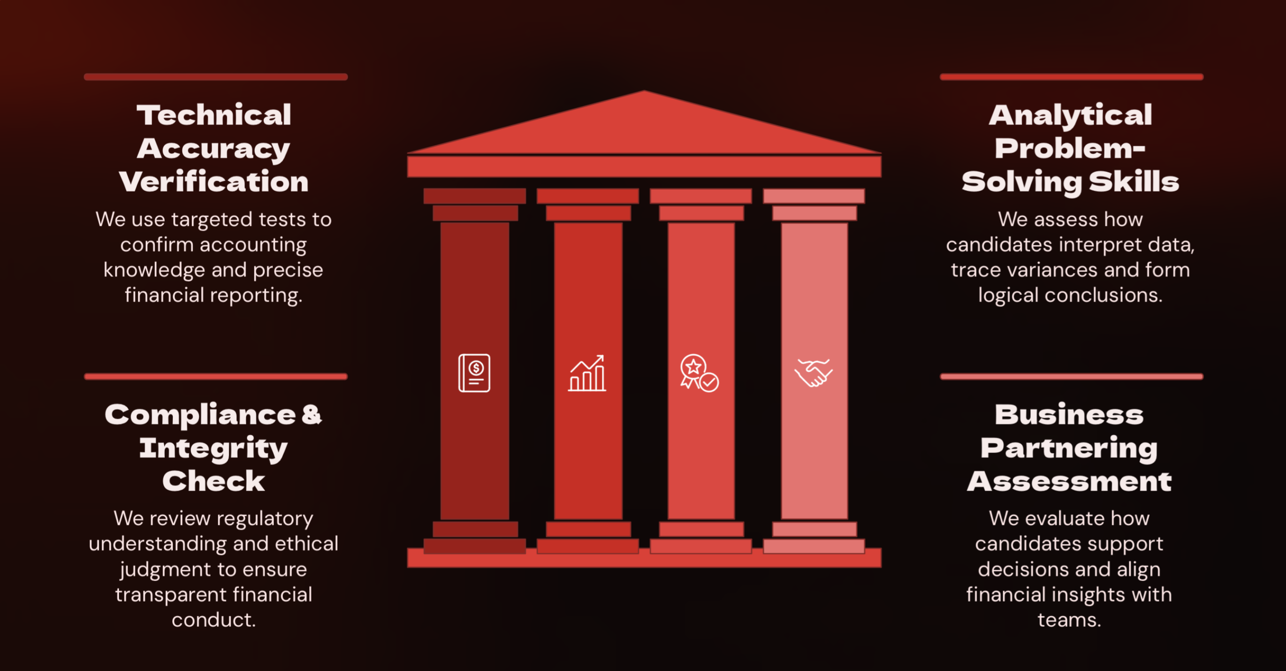 We move past certifications to assess decision-making discipline, business partnership readiness, governance maturity, and real-world financial judgment while ensuring every hire strengthens control, credibility, and strategic clarity.